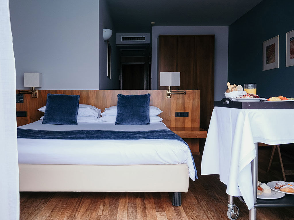Die Badezimmer sind aus Serizzo-Marmor und verfügen über eine Badewanne oder Dusche und Badeschuhen für den Pool. Die Zimmer sind mit Klimaanlage, Minibar, Safe, TV, Wi-Fi-Anschluss, Espressomaschine, Wasserkocher mit verschiedenen Teesorten und Instantkaffee ausgestattet.